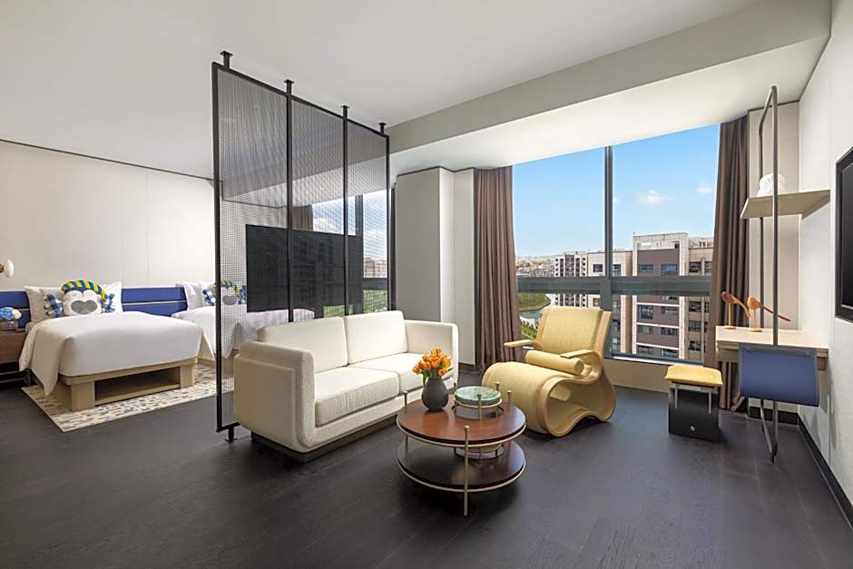 Featuring free toiletries and bathrobes, this suite includes a private bathroom with a shower, a hairdryer and slippers. In the well-fitted kitchenette, guests will find a stovetop, a refrigerator, a dishwasher and an oven. The suite is furnished with a desk and a seating area and features air conditioning, soundproof walls and city views. The unit has 2 beds.